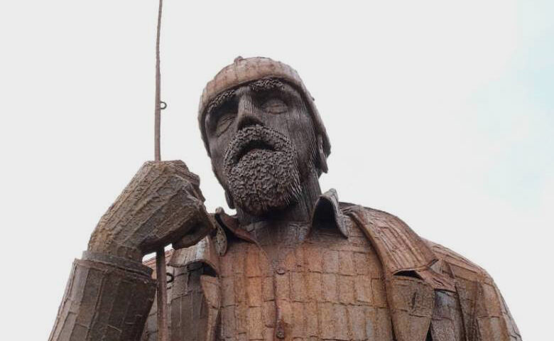 The sculpture which is entitled ‘A High Tide In Short Wellies’ is the creation of Ray Lonsdale and was designed to be a comment on the need to look after the fish stocks. There is also a poem at the base of the statue which reads: